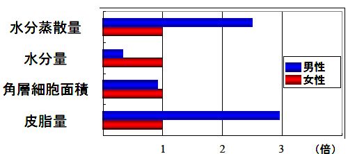 しかし、水分量は男性の肌と女性の肌を比べると、男性の方が元々の水分量が少なく水分蒸散量が高いので乾燥しやすいのです。